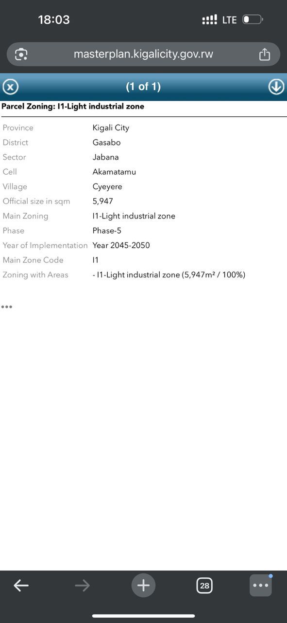 π INDUSTRIAL PLOT FOR SALE β JABANA (GASABO) Prime opportunity to secure a large industrial property in one of Kigaliβs fast-growing zones! π Location: Jabana, Gasabo π Plot Size: 5,947 sqm π° Price: 320,000,000 RWF This spacious plot is ideally located in an emerging industrial area, making it perfect for warehouses, factories, logistics centers, or other large-scale commercial developments. The area is accessible and well-positioned for business growth, offering excellent investment potential. π Key Highlights: β’ Strategic industrial location β’ Large land size suitable for multiple developments β’ Easy road access for transport and logistics β’ High return on investment potential π For more information or site visit: Call/WhatsApp: +250 783 512 291 Donβt miss this rare opportunity to invest in a high-value industrial zone!